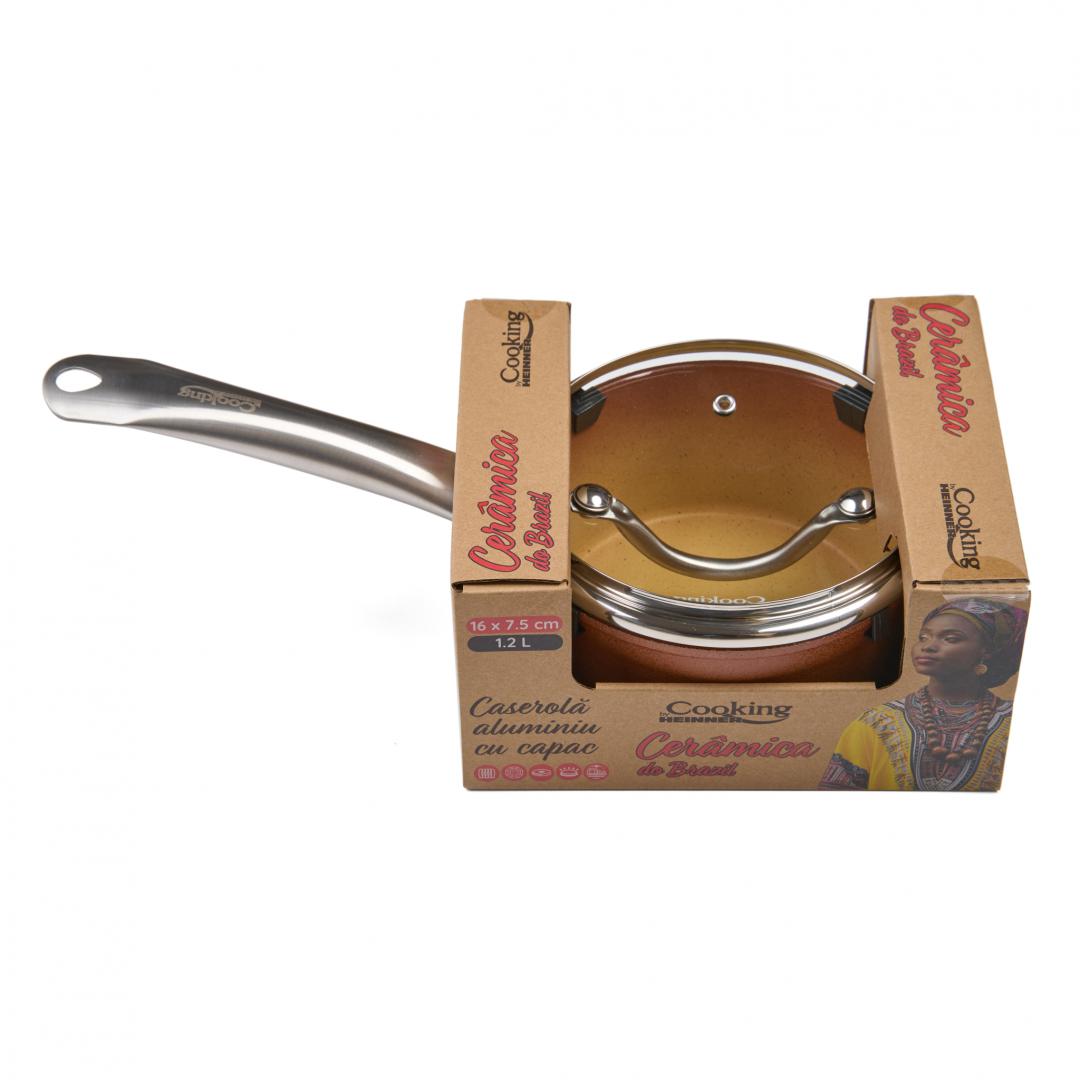 CASEROLA ALUMINIU + CAPAC 16×7.5 CM, 1.2L, CERÂMICA DO BRAZIL, COOKING BY HEINNER