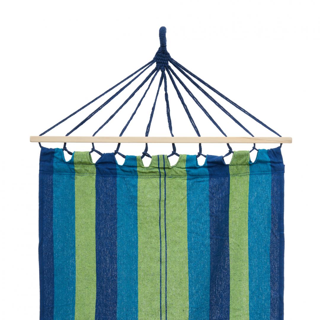 Imprimeul colorat al acestui hamac bucura privirea si contribuie la imbunatatirea starii de spirit.