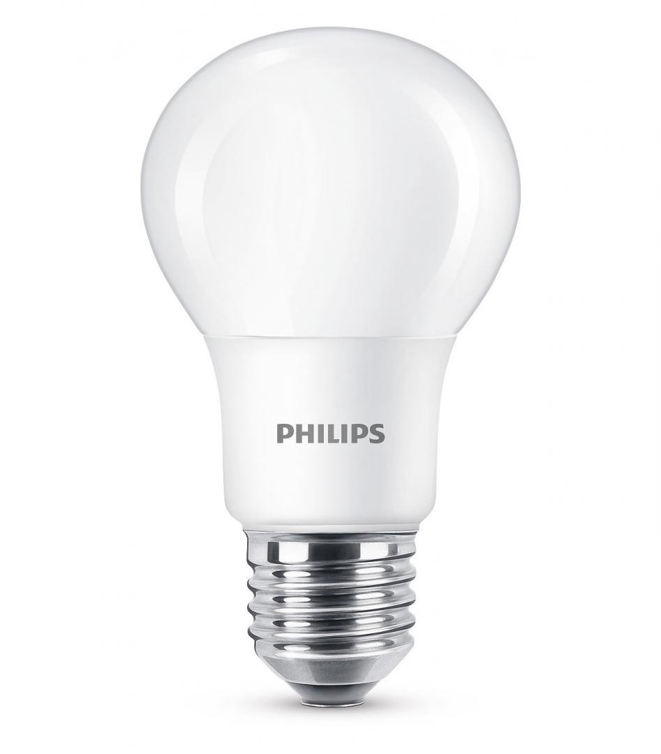 6 Becuri LED Philips A60, E27, 8W (60W), 806 lm, lumina calda (2700K), mat