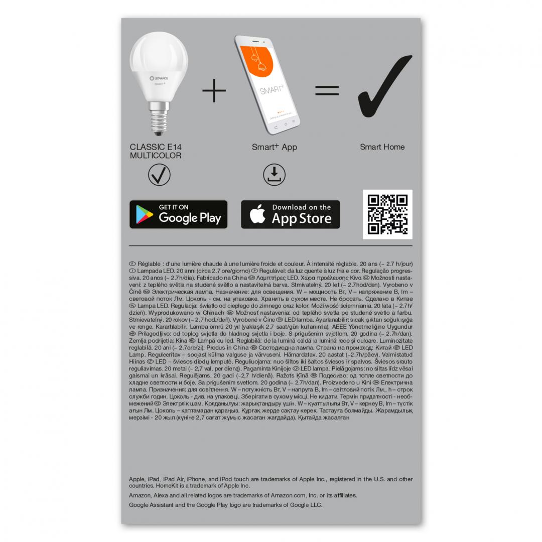 Bec LED RGB inteligent Ledvance SMART+ WiFi Mini Bulb Multicolour P, E14, 4.9W (40W), 470 lm, lumina alba si color (2700-6500K)
