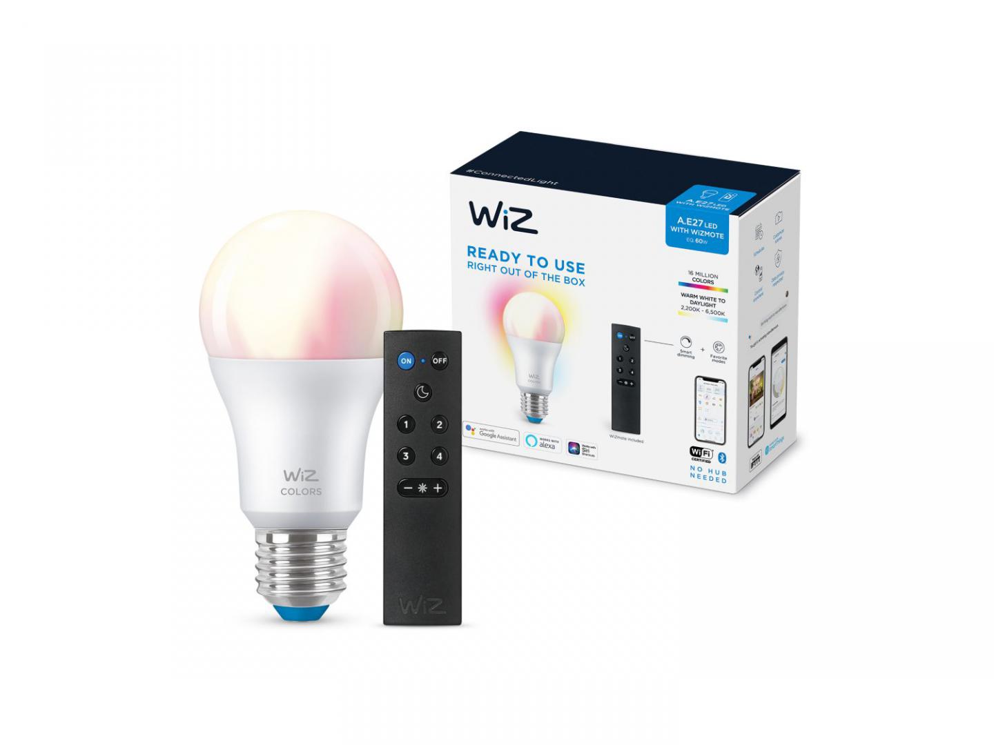 Cu acest pachet pentru iluminat inteligent obțineți un bec inteligent WiZ standard, complet color, cu soclu E27 și o WiZmote. Utilizați WiZmote, aplicația WiZ sau vocea pentru a diminua și crește intensitatea luminoasă sau utilizați modurile de lumină presetate pe configurațiile Wi-Fi.