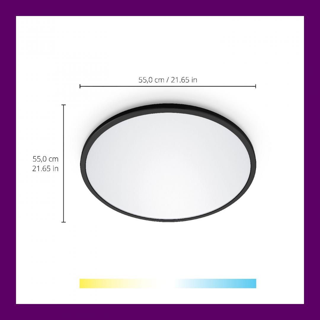 The WiZ SUPERSLIM ceiling -mounted light from the Philips company with a diameter of 55 cm is perfect for lighting a corridor , hall , bedroom or study . Thanks to its ultra-thin appearance with a height of only 2.8 cm , it fits into any interior .