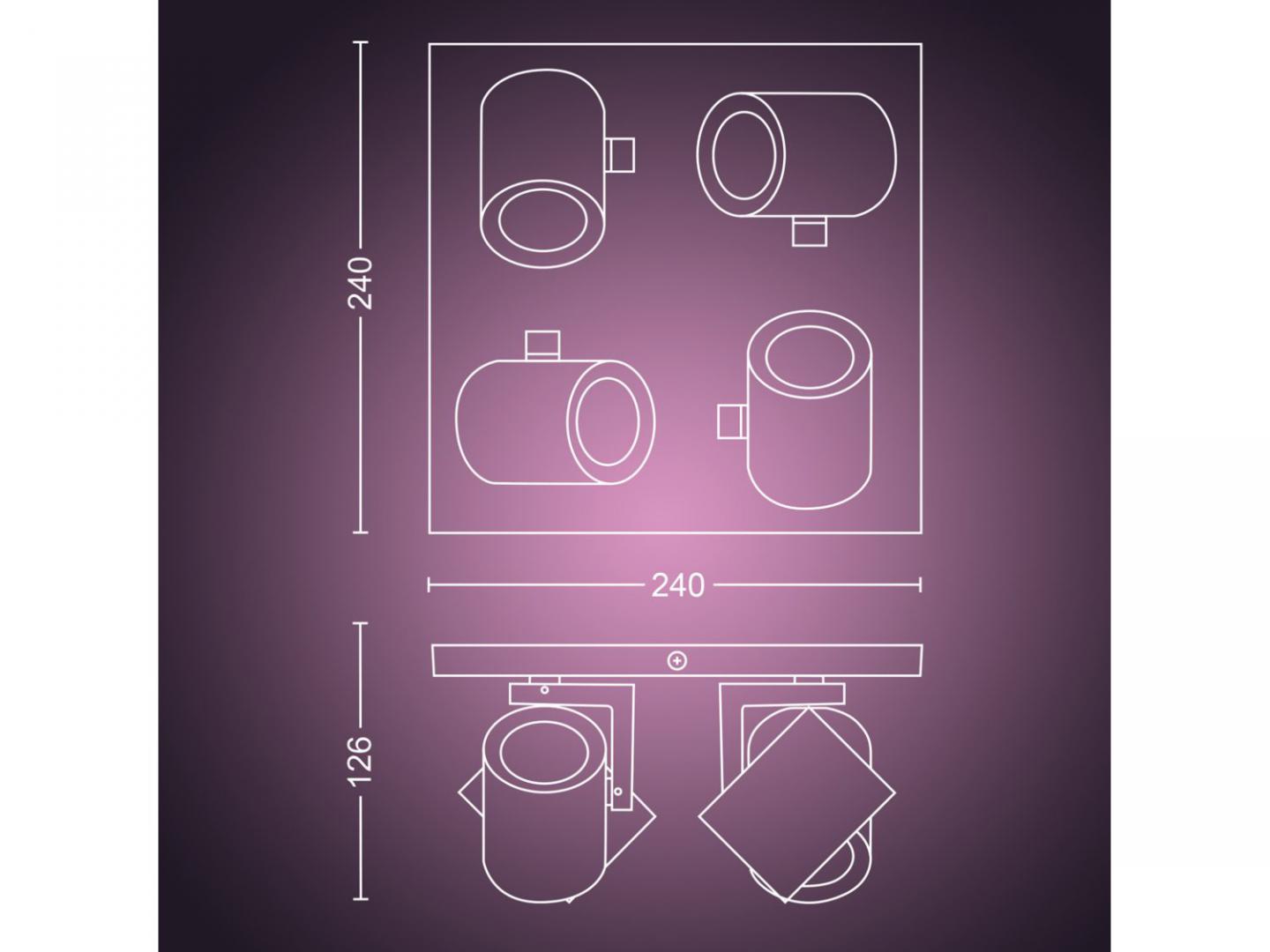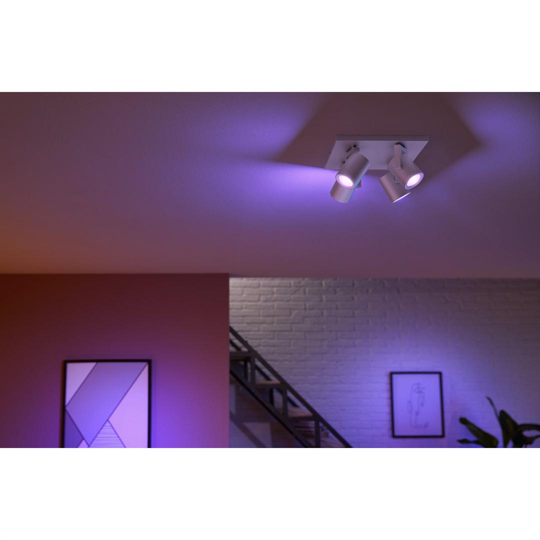 Spot LED RGB Cvadruplu Philips Hue Argenta, Bluetooth, 4xGU10, 4×5.7W, 4×350 lm, lumina alba si color (2000-6500K), IP20, Metal, Argintiu