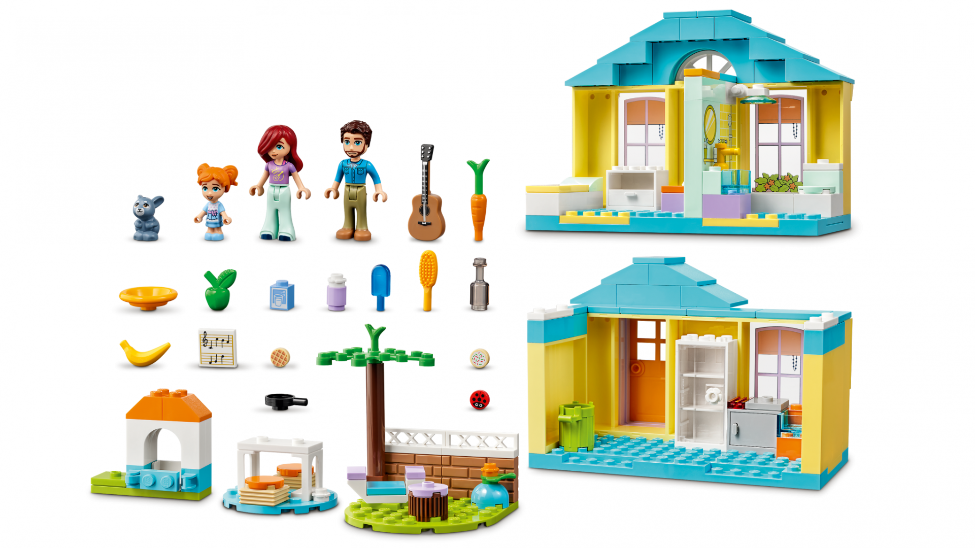 Micii constructori de 4+ ani au multe de descoperit în acest set de construcție LEGO® Friends Casa lui Paisley (41724). Etajul superior include un dormitor și o baie și poate fi îndepărtat, facilitând explorarea bucătăriei de la parter. Setul include accesorii pentru joaca pe roluri, între care gustări și fructe pe care să le consumi la masa din afara casei, precum și un recipient pentru reciclare. În curte se află un colțișor confortabil unde Paisley cântă la chitară și compune muzică în vreme ce-i ține companie iepurașului său. Există și un morcov pe care să-l ronțăie iepurașul. Încurajează micii constructori Seturile LEGO pentru copii de 4+ ani includ o cărămidă practică pentru începători, o bază solidă care oferă o experiență de construcție rapidă și distractivă. Folosește aplicația LEGO Builder ca să te ghideze pe tine și pe copilul tău într-o aventură de construcție ușoară și intuitivă. Mărește și rotește modelele 3D, salvează seturile și monitorizează-ți progresul. Bun venit la generația următoare din Orașul Heartlake Copiii își fac prieteni și descoperă locații interesante în universul LEGO Friends, unde se pot bucura de joacă creativă și pot interpreta aventuri din viața reală.