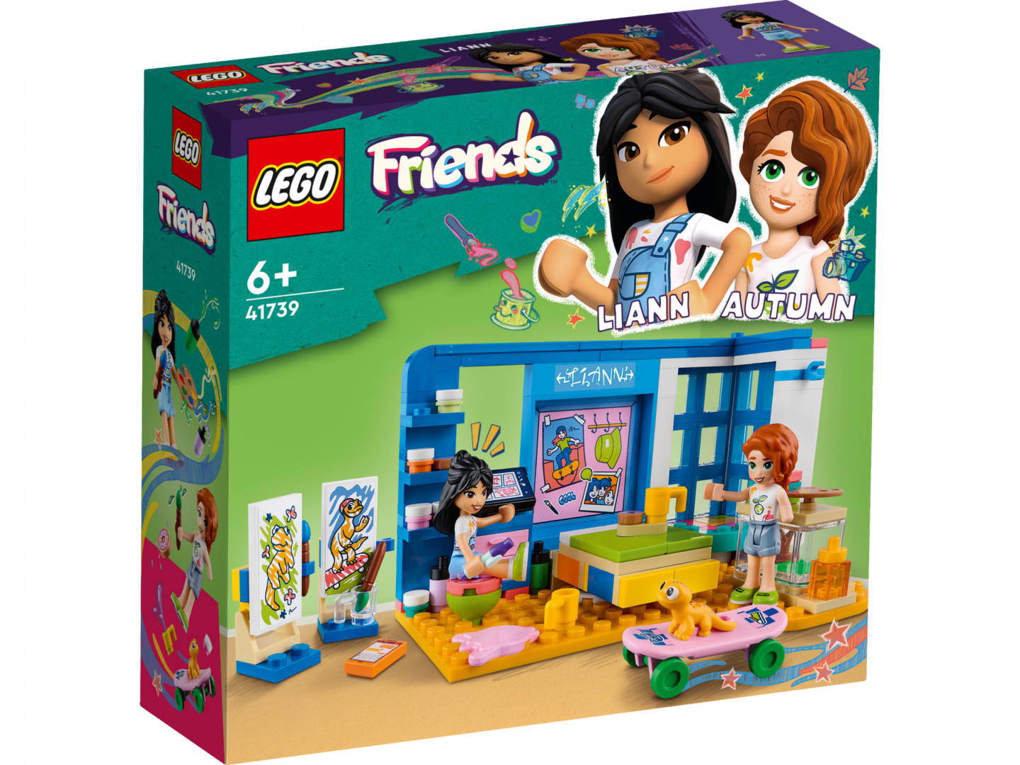 Copiii pasionați de artă de 6+ ani au multe de descoperit în acest set de construcție LEGO® Friends Camera lui Liann (41739), care conține un birou de artă, un ungher la fereastră și un pat ascuns. Vor adora să exploreze prietenia dintre energica Liann și relaxata Autumn. Joaca fantezistă este inițiată cu ușurință pe când copiii își închipuie că pictează portretul șopârlei gecko Popcorn, animalul de companie al lui Liann. Setul conține multe accesorii care inspiră creativitatea, cu materiale pentru un studio de artă precum tuburi de vopsea, palete și șevalete. Mai include și gogoși de jucărie, căni, cărți de benzi desenate, o placă de skateboard, un telefon mobil, un stilou și un terrarium pentru șopârla gecko Popcorn. O experiență distractivă de construcție Oferă-i copilului tău o aventură de construcție ușoară și intuitivă cu aplicația LEGO Builder. În aplicație, copiii pot apropia și roti modelele 3D, pot salva seturi și își pot monitoriza progresul. O nouă generație în Orașul Heartlake Copiii își pot face prieteni, descoperi locații interesante și interpreta aventuri din viața reală în universul LEGO Friends.