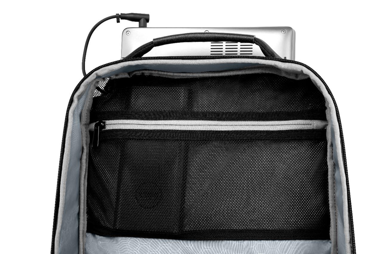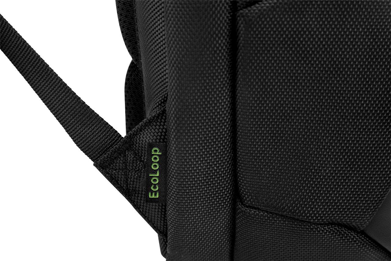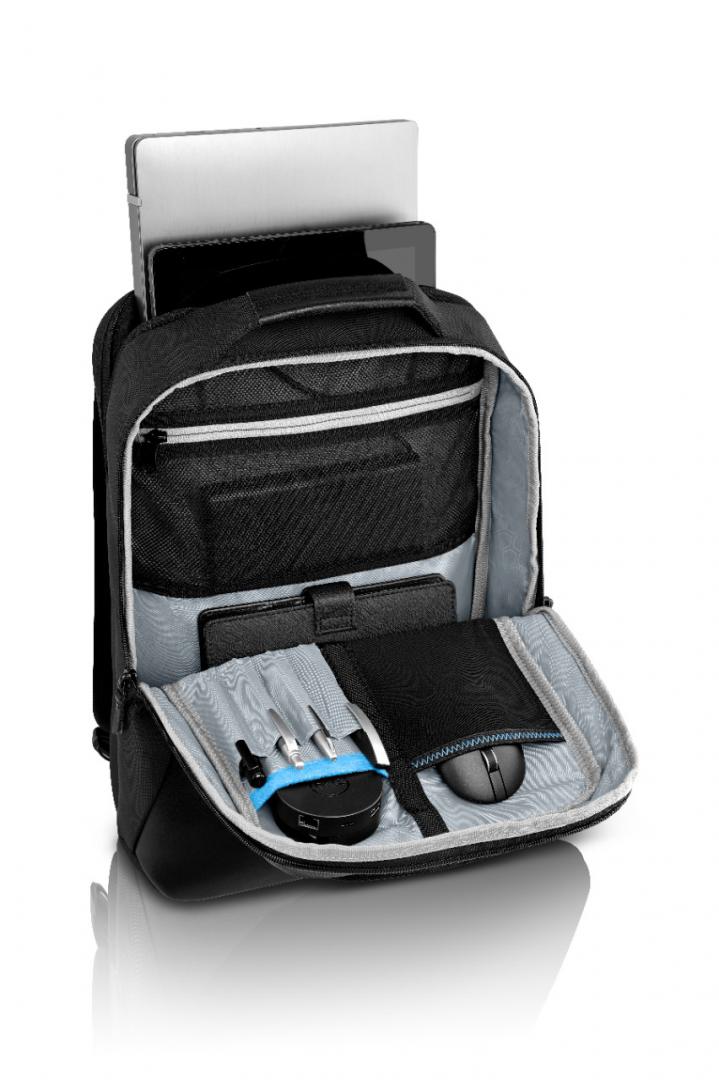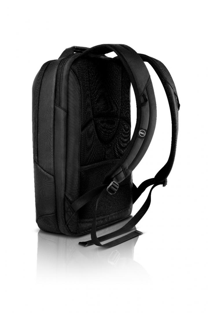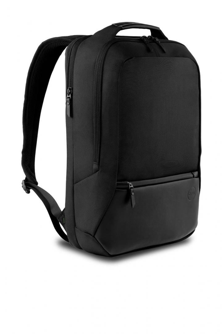 | Travel light while making a positive impact on the environment by selecting the compact Dell Premier Slim Backpack 15 (PE1520PS), made with Dell’s EcoLoop solution dyeing process for polyester that generates up to 90% less wastewater, 62% less CO2 emissions, and uses up to 29% less energy than traditional dyeing processes (based on Dell internal analysis of published data on solution-dyed virgin polyester and fabric supplier data sheets, December 2018). EVA foam cushioning offers shock resistance and a lightweight way to protect your laptop. Your laptop and important documents will remain dry in wet, stormy weather while inside the backpack that is constructed of sturdy polyester with black leather accents, and coated with a water-resistant, protective material made from reclaimed automobile windshields. Carry the lightweight backpack by the leather cushioned top handle, sling the backpack over your shoulders to go hands-free or attach the backpack on top of your rolling suitcase with the trolley strap. Charge your laptop inside the backpack while you’re traveling by passing a cable through to a dedicated portable charger pocket (portable charger sold separately). |