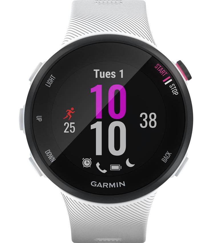 GPS Runnning Watch Garmin Forerunner 45 Small White, Diametru: 1,04″ (26.3mm), Rezolutie afisaj: 208 x 208 pixeli, Durata de viata a bateriei: Mod ceas inteligent: până la 7 zile; mod GPS cu muzică: până la 13 de ore, Rezistenta apa: 5 ATM, Afisaj in culori, GLONASS, Galileo, Monitor cardiac – Garmin ELEVATE.