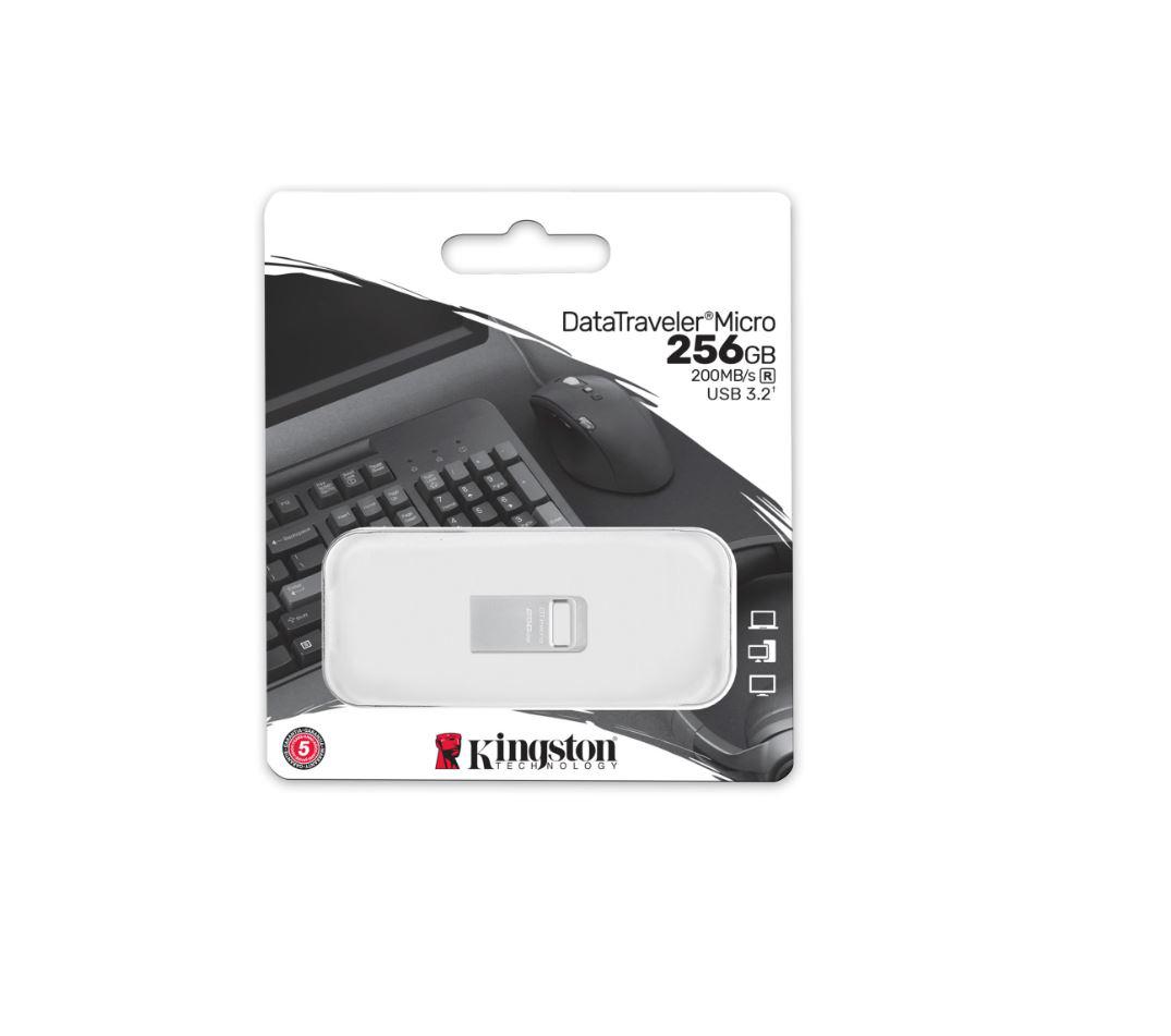 USB Flash Drive Kingston 256GB Data Traveler Micro, USB 3.2 Gen1, Metalic