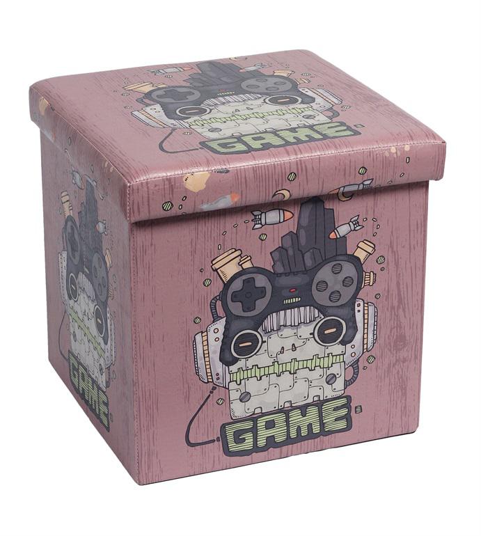 Folding stool with storage space-Game Outer material: PVC printed + MDF base. Seat thickness 20mm. Maximum weight supported 150 kg. Product size: 38x38x37.5CM