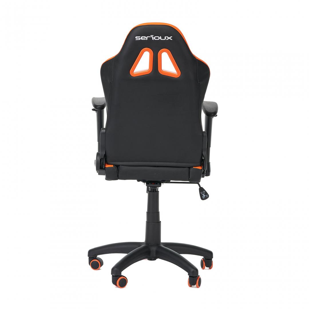 Scaun gaming X by Serioux, KIDS, ajustabil, piele sintetica, piston pe gaz clasa 2, manere reglabile, baza stea cu 5 picioare, greutate maxima admisa 100Kg, perna detasabila, negru/portocaliu